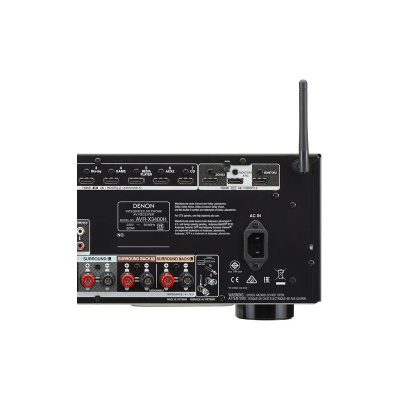 El AVR-X3400H posee un procesador de vídeo avanzado para el vídeo de baja resolución existente de cualquier fuente analógica o digital para el verdadero 4K. Con tres salidas HDMI, usted puede incluso conectar un televisor y un proyector en la sala principal, mientras que reproduce diferentes contenidos en una pantalla de segunda zona.