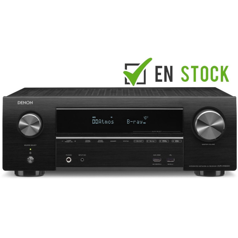 AVR-X1600H Amplificador Home Cinema 7.2 canales y 145 Watios | 6 entradas HDMI HDCP 2.3 | Entrada PHONO para tocadiscos | eARC | Dolby Atmos 5.1.2, DTS:X 7.1 | HEOS Multiroom integrado -> Radio internet, Spotify, Tidal... | Bluetooth de entrada y salida (envía señal a auriculares Bluetooth)