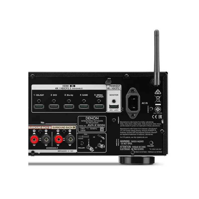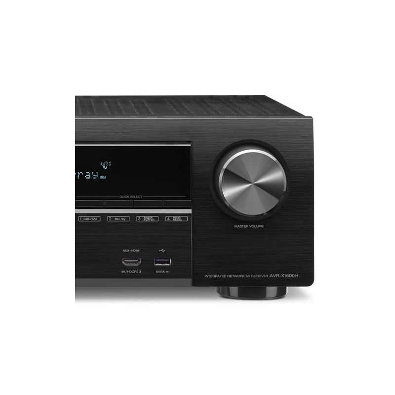 El AVR-X1600H tiene amplificadores de alta corriente independientes en todos los canales y, por lo tanto, es particularmente potente: 145 vatios por canal (6 ohmios, 1 kHz, 1% THD). Los parlantes de baja impedancia proporcionan estabilidad funcional para muchos altavoces y un sonido equilibrado y completo. El AVR-X1600H es compatible con Dolby Atmos, DTS:X y DTS Virtual:X y ofrece una gama HDMI con compatibilidad con HDCP 2.3 y procesamiento de vídeo avanzado con escalado de 4K para fuentes HDMI.