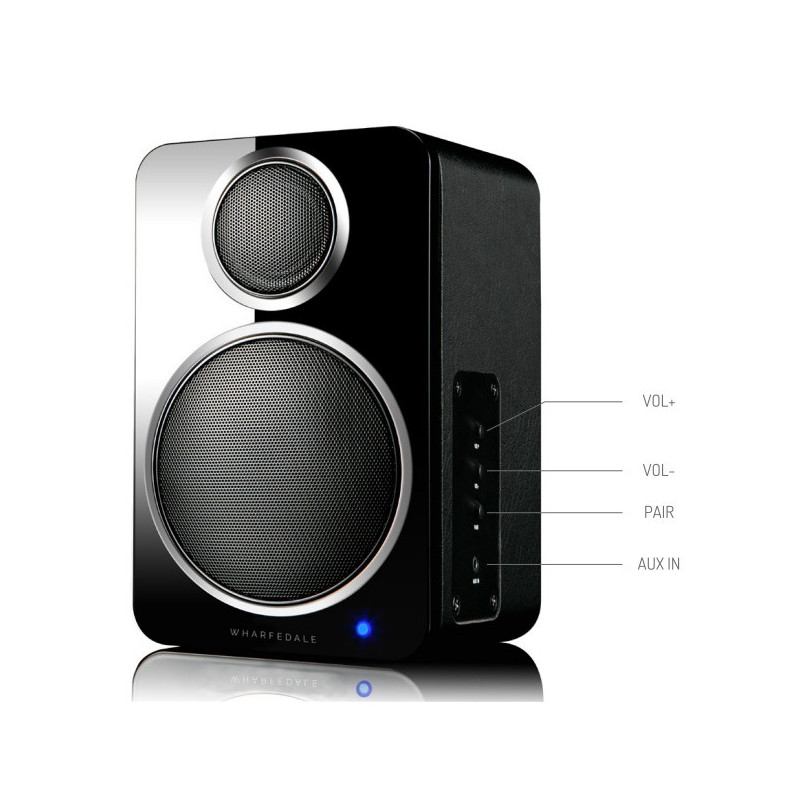 En respuesta a los comentarios de los clientes, Wharfedale ha reubicado el panel de control y conexión al lado del DS-2. Esto hace que las conexiones (ya sea a través de 3,5 mm analógico o Bluetooth) y los ajustes de volumen sean un juego de niños.
