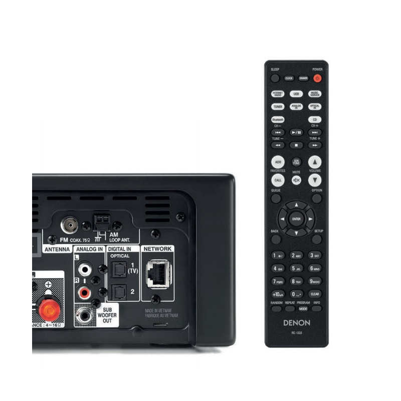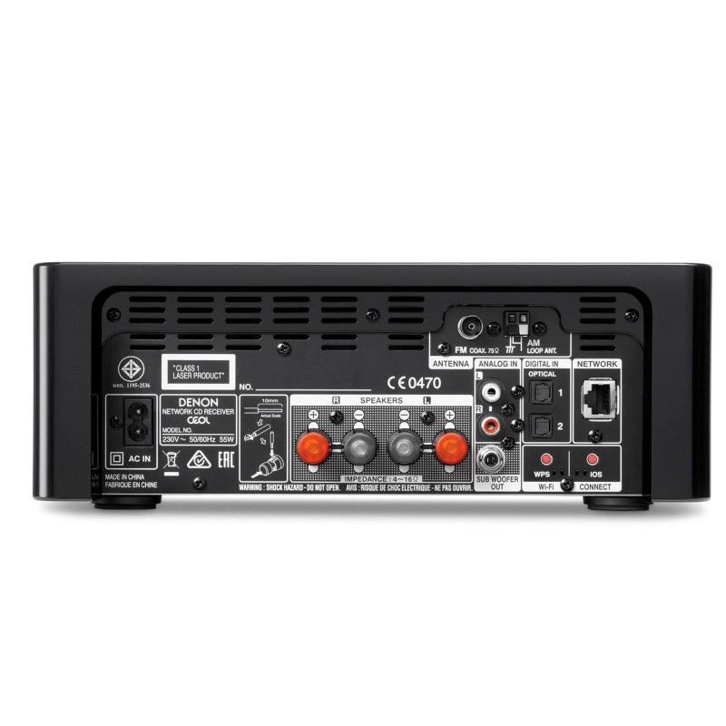 Denon RCDN10 - Electrónica con WIFI, Bluetooth, plataforma HEOS integrada. AirPlay 2, Spotify, TIDAL, radio por internet... Radio FM. Compatible Amazon ALEXA. Entrada analógica estéreo y 2 entrada Digital Óptica. Salida Subwoofer