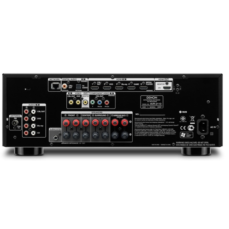Estamos ante un potente amplificador Denon AVR2113 de 7 canales y una potencia de 95 Watios a 8Ohmios. Escalador de vídeo de 1080p a 4K, Airplay, Aplicación Denon Remote App para iPhone, iPod y Android. Internet Radio y conexión Ethernet DLNA 1.5