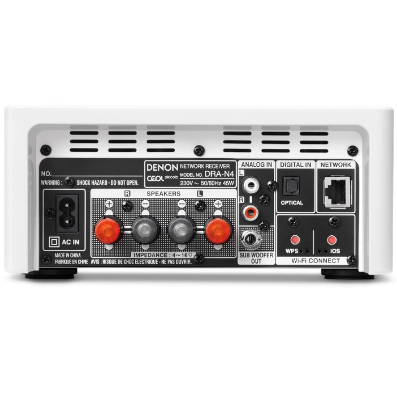 La micro cadena denon Ceol Piccolo N4 está compuesta por la electrónica Denon DRAN4 y los altavoces Denon SCN4. Ambas unidades disponibles en color Blanco o Negro. Los altavoces tienen una configuración de 2 vías formados por un altavoz de medios/graves y un altavoz de agudos.