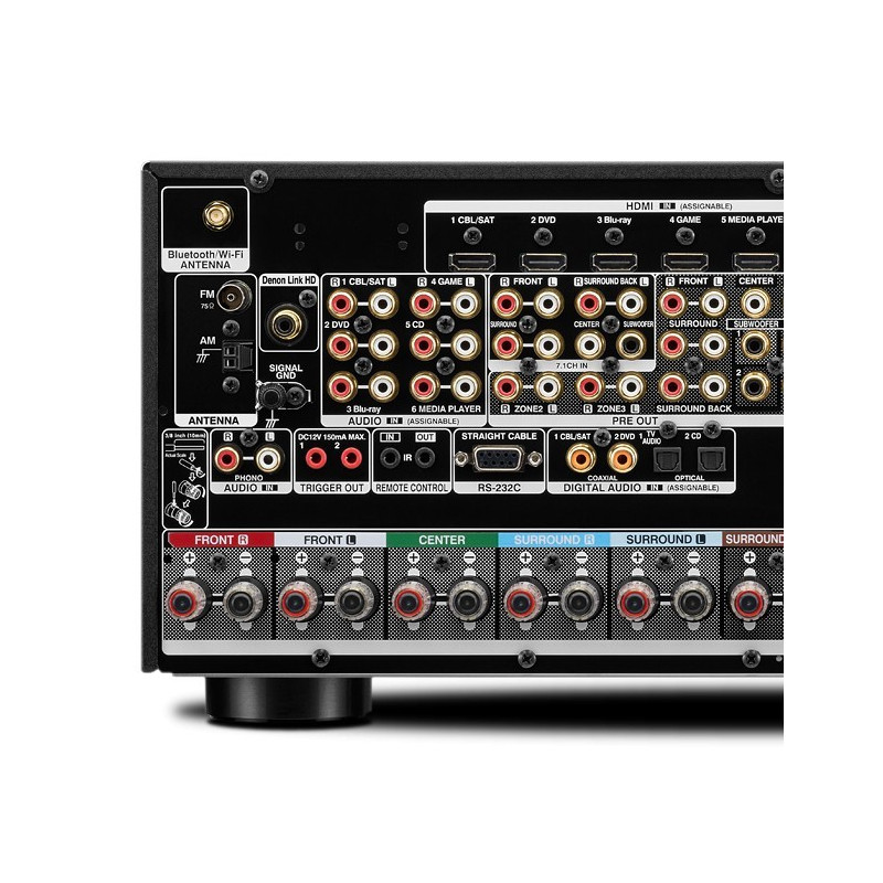 Gracias a built-in Wi-Fi y Bluetooth, que está perfectamente definido para todos los servicios de red incluyendo Spotify Connect, AirPlay, Red Streaming de música y radio por Internet. A través de sus 8 entradas HDMI (incluido uno en el panel frontal) que maneja pase 60Hz 4k, e incluso aumenta la calidad de vídeo a 1080p y 60Hz 4k. Ahora agregue a estrenar Dolby Atmos, salidas triples HDMI con múltiples fuentes funcionalidad / multizona e integrada Audyssey MultEQ XT32 / Sub EQ HT / LFC para garantizar la calibración ideal de su configuración. La función única Denon Link HD, que garantiza lo último en placer entretenimiento trabaja en combinación con AL32 Processing Multicanal y DDSC-HD32 para la reproducción de audio de mayor resolución.