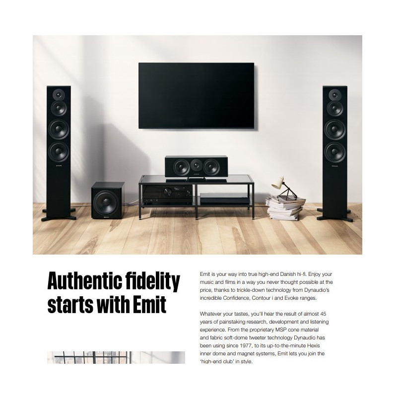 Dynaudio Emit C25 Altavoz central | Diseño Bass Reflex | Nuevo Tweeter Cerotar (el mismo que el Serie Evoke) | Producto diseñado y fabricado en Dinamarca