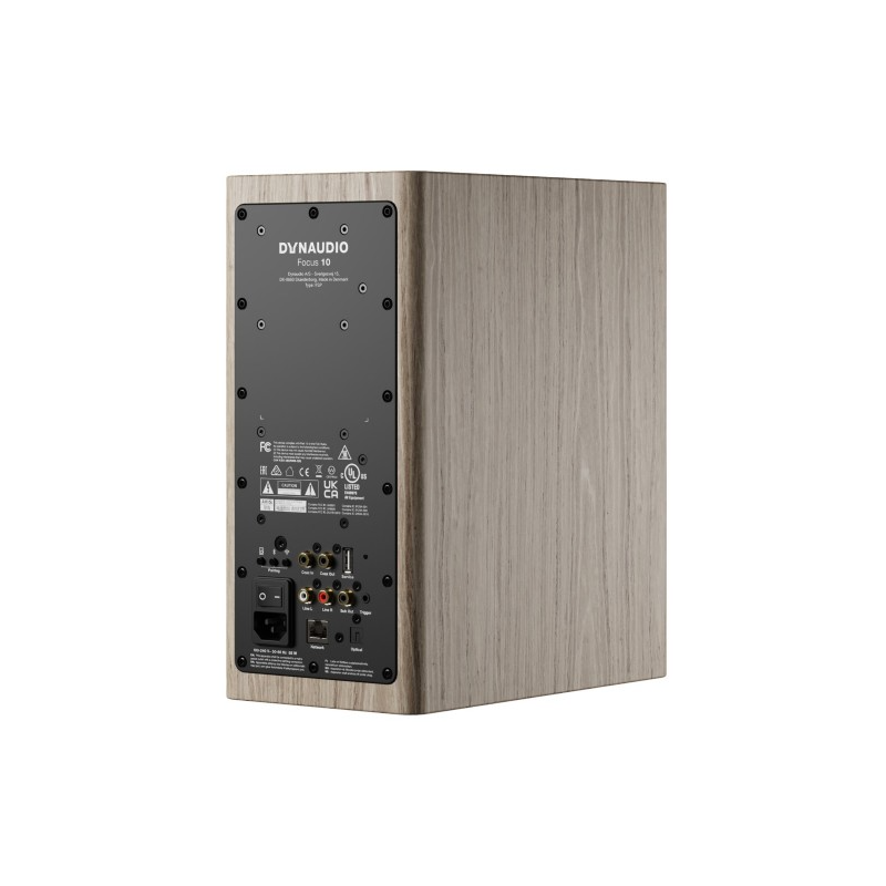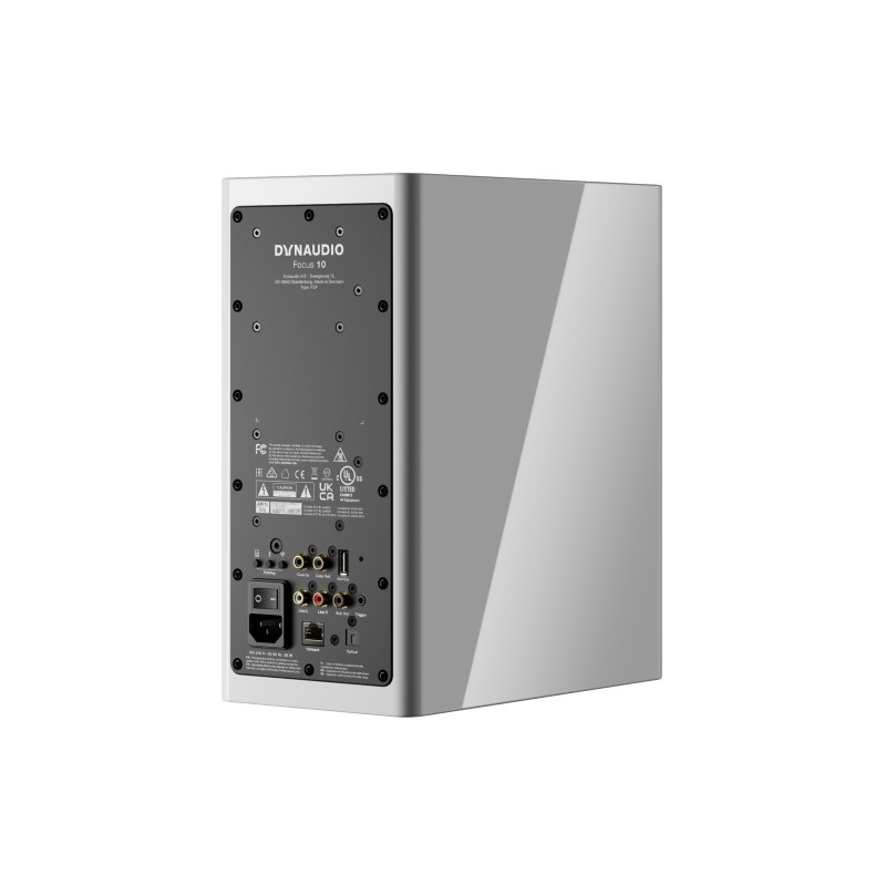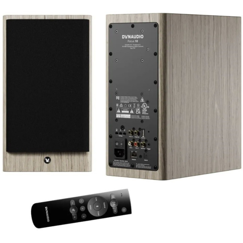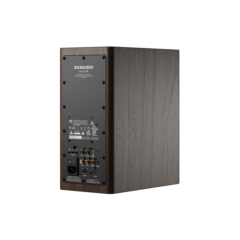 Dynaudio Focus 10 altavoces activos de estantería | Woofer: 14cm MSP, Tweeter: cúpula blanda de 28 mm | Entradas: analógica 2x RCA, digitales RCA y Toslink | Salida Sub RCA | Wi-Fi, Ethernet, Bluetooth | Conexión entre altavoces: WiSA (hasta 24 bits/96 kHz) | Precio la pareja, dos unidades