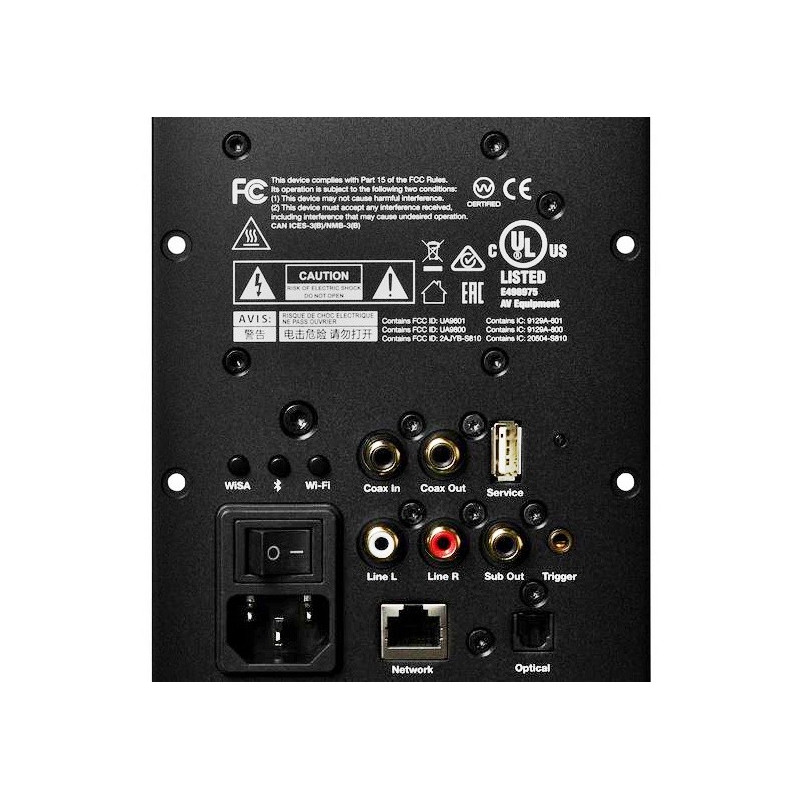 Gracias a su tecnología WiSA incorporada, los altavoces también se conectan de forma inalámbrica a un televisor compatible o a un dongle USB, lo que elimina la necesidad de aparatos electrónicos voluminosos para el cine en casa y libera espacio en el estante del equipo para algo más que otro rectángulo negro.