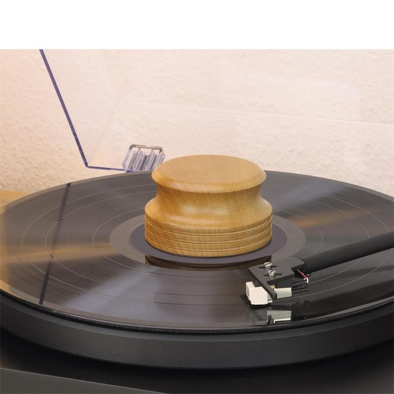 Estabilizador de Dynavox para tocadiscos fabricado en madera maciza de alta calidad. El estabilizador distribuye el peso uniformemente sobre el disco y así aumenta la presión de contacto del disco sobre el plato. Apto para todos los tocadiscos, lado de apoyo con fieltro.