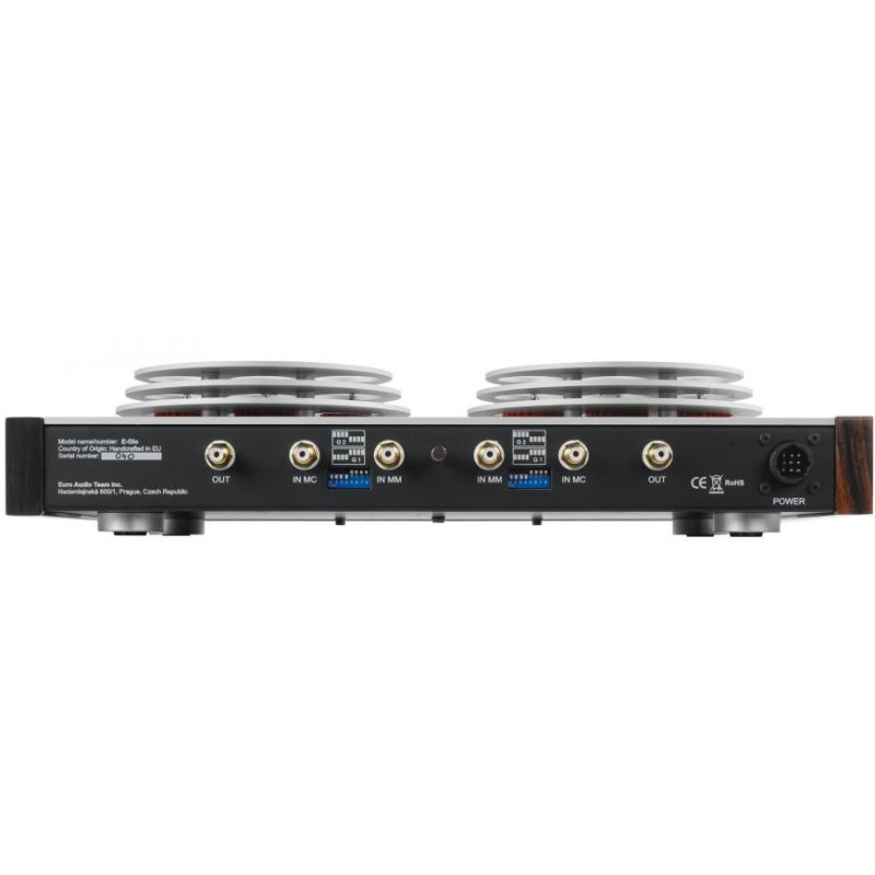 EAT E-GLO es un diseño de tubo completamente libre de semiconductores en su trayectoria de señal. Su complemento de tubo consiste en la clásica cristalería amada por los audiófilos: cuatro ECC83 y dos ECC88. El uso de estas válvulas asegurará que los suministros de tubos de reemplazo estén siempre disponibles, mientras que se alienta la experimentación para aquellos que aman afinar el sonido de sus sistemas cambiando tubos.