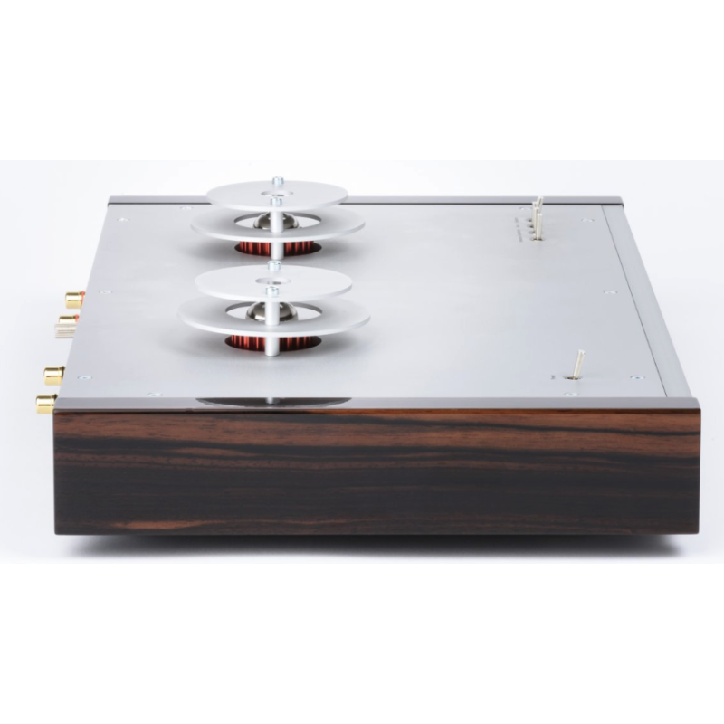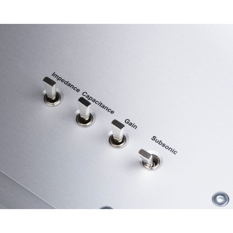 La curva RIAA se iguala totalmente pasiva y se divide en dos pasos, lo que permite lograr una perfecta correspondencia de impedancia entre la etapa de ganancia y el bloque de ecualización. El preamplificador del fono no tiene ninguna retroalimentación global. Dispone de un chasis de aluminio macizo, con gran posibilidad de ajustar la impedancia, la capacidad y la ganancia. Tiene un filtro subsónico de efecto suave que no afecta a las frecuencias audibles de forma desagradable.