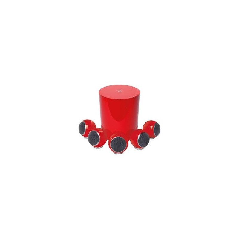 Conjunto de altavoces 5.1 con subwoofer de 200 Watios. Disponible en colores Blanco, Negro o Rojo