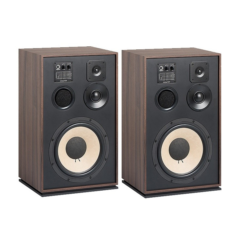 Un código estético decididamente vintage y modular gracias a sus dos bases suministradas. Pero más allá de su estética, su musicalidad está en primer lugar Este compacto altavoz de 3 vías afinado en un diseño Bass Reflex con puerto acampanado frontal se beneficia de un nuevo woofer de celulosa de 30 cm de diámetro con un potente imán, un nuevo midrange de cúpula tratada de 55 mm de diámetro que cubre casi tres octavas y, finalmente, un tweeter de cúpula de seda de 22 mm de diámetro decaído del famoso tweeter de nuestro modelo insignia de la serie Prestige Facet. Una fina amplitud de 2dB le permite ajustar los niveles de frecuencias medias y altas de acuerdo con su sala de escucha o afinidad auditiva. Además, es posible insertar una base con una inclinación de 7° (suministrada) para un phasing acústico perfecto o en un soporte metálico opcional que lo eleva 19 cm además de esta inclinación. La energía y el control de los bajos, la definición y el relieve de los medios, la delicadeza y la extensión de las altas frecuencias caracterizan el placer sónico de este altavoz Elipson Heritage XLS15.
