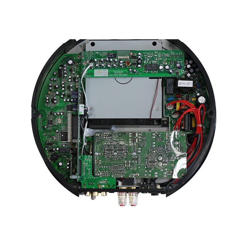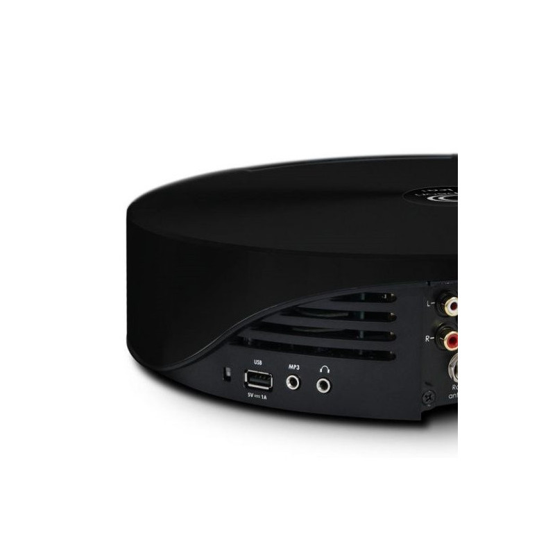 El elegante estuche circular tiene ahora un acabado negro. La interfaz de usuario táctil se encuentra debajo de la ranura para CD. El sintonizador RDS FM añade el toque final a este receptor muy versátil. Este dispositivo es el complemento perfecto para una moderna instalación doméstica inteligente, gracias a la caja Chromecast que acompaña al receptor. Esta caja permite al usuario conectarse al receptor vía Wi-Fi directamente desde un smartphone, tableta u ordenador, garantizando así una transmisión sin pérdidas y libre de latencia. Para disfrutar de una integración óptima en la decoración de su sala de estar, también está disponible un soporte especialmente diseñado con un paso de cables.