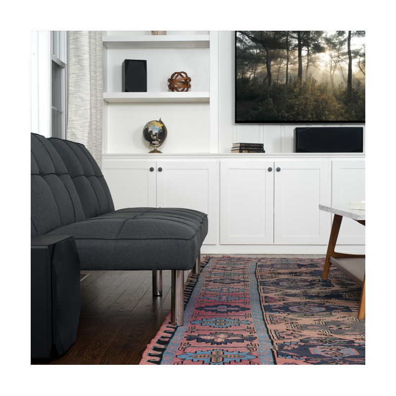 Una calidad de audio excepcional y grandes especificaciones por sí solas no crean una gran caja acústica, por lo que Emotiva ha incluido una larga lista de funciones prácticas en Airmotiv. El bisel frontal está acabado con varias capas de lacado en negro satinado, elegante y resistente a las huellas dactilares y arañazos, mientras sus lados están cubiertos con resistente y atractivo vinilo negro. Para quienes prefieren cubrir su tecnología, los altavoces Emotiva Airmotiv incluyen grills magnéticos.