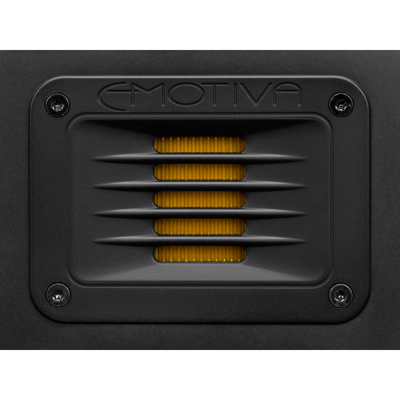 Todos los dispositivos de la gama de cajas pasivas Airmotiv aúnan un diseño meticuloso, muchas pruebas y un análisis en profundidad con variado material musical, para ofrecer la mejor calidad de sonido y reproducción técnica posible.. Los tweeters Airmotiv™ ofrecer una respuesta en frecuencia plana, baja distorsión, compresión de señal virtualmente inexistente, suavidad fuera de eje y una imagen amplia. Los avanzados drivers de fibra textil para mid-range ofrecen una respuesta en frecuencia suave y un rango medio verosímil y detallado, con baja coloración; los woofers Emotiva incluyen bobinas de voz a alta-temperatura y piezas magnéticas aireadas para lograr unos graves vibrantes a cualquier volumen. Crossovers de precisión diseñados escrupulosamente, fabricados con películas capacitadoras de grado audiófilo, inductores de aire al núcleo y resistencias en localizaciones críticas sirven de argamasa. Y, por último, las carcasas exclusivas de Emotiva fabricadas con HDF grueso, reforzado e inerte acústicamente para asegurar la máxima rigidez y resistencia contra las vibraciones y un panel frontal hecho a partir de una tabla sólida de HDF con 25mm de grosor. El poliédrico diseño del panel frontal, heredado de los monitores de estudio Emotiva, no solo aporta un look futurístico a las cajas Airmotiv, también sirve para un propósito muy práctico - minimizar los efectos de difracción y las interacciones con la sala.