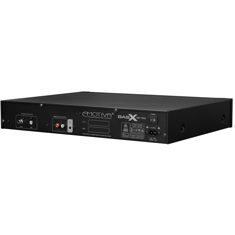 En el exterior, la parte frontal de aluminio y el chasis de acero componen una estética elegante y sólida. El mecanismo de carga de CD toma los discos con cuidado y suavidad, permitiendo al CD-100 ser totalmente controlado mediante mando a distancia o los botones del panel frontal. En el interior, las capas y el aislamiento extra dan mayor protección contra las interferencias, vibración y jitter. El nuevo y optimizado DAC de este Emotiva BasX está alimentado por una fuente sofisticada y multi-stage filtrada, permitiendo al CD-100 reproducir con una fantástica calidad de sonido. Se utilice el Emotiva BasX CD-100 como un transporte CD, o conectado a la salida analógica de su avanzado DAC, lleva la escucha de discos compactos al siguiente nivel.