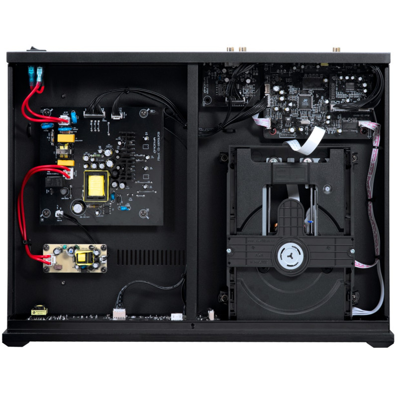 Lector de CD con chasis de acero, muy bien construido y de grado audiófilo. Se puede utilizar como lector de CD convencional o bien como transporte si elegimos sacar el audio por sus salidas digitales Coaxial u Optica. Mando a distancia. DAC Cirrus Logic CS4398 Advanced Multi-Bit Delta-Sigma DAC.
