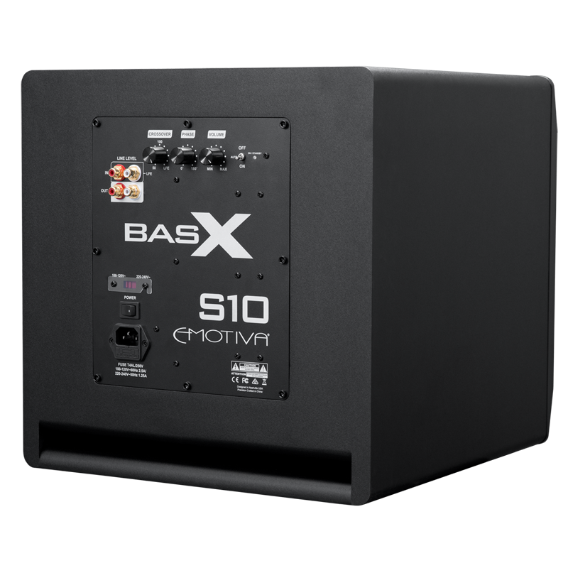 •El subwoofer BasX S10 incluye controles de volumen, fase y crossover que permiten integrarlo fácilmente con los altavoces principales. El subwoofer BasX S10 se puede configurar con encendido automático con el inicio de la reproducción musical, e incluye avanzada tecnología de protección para prevenir daños en caso de sobrecarga accidental.