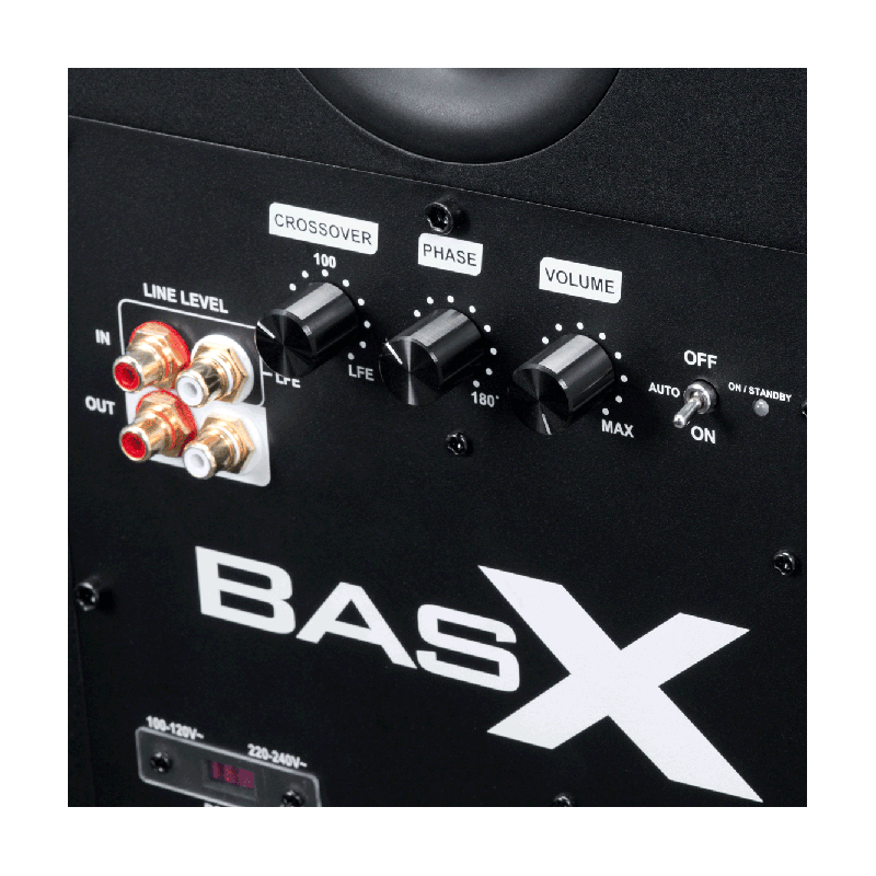Los subwoofers BasX son tres: the S10, the S12, and the S15. Cada modelo incluye un driver de graves down-firing mecanizado de alta excrusión; un radiador pasivo frontal y un potente amplificador Clase A/B de clase audiófila. Todos cuentan con el mismo control y su principal diferencia es que los más grandes tienen más potencia y logran niveles de salida mayores, con una respuesta en frecuencia que desciende todavía un poco más. Las carcasas están fabricadas con HDF de fuerte estructura interna y acústicamente transparente, que cuenta con pies absorventes y atractivos grills tejidos extraíbles. Los biseles frontales están acabados con varias capas de lacado en negro satinado y los lados y la parte trasera cubiertos con duradero y atractivo vinilo. Su estilo, futurístico aunque discreto, encaja a la perfección con casi cualquier decoración. La gama completa de controles y conexiones de entrada quedan ocultos en el panel trasero, que también incluye extractores de calor de alto rendimiento que se encargan de enfriar los amplificadores del interior.