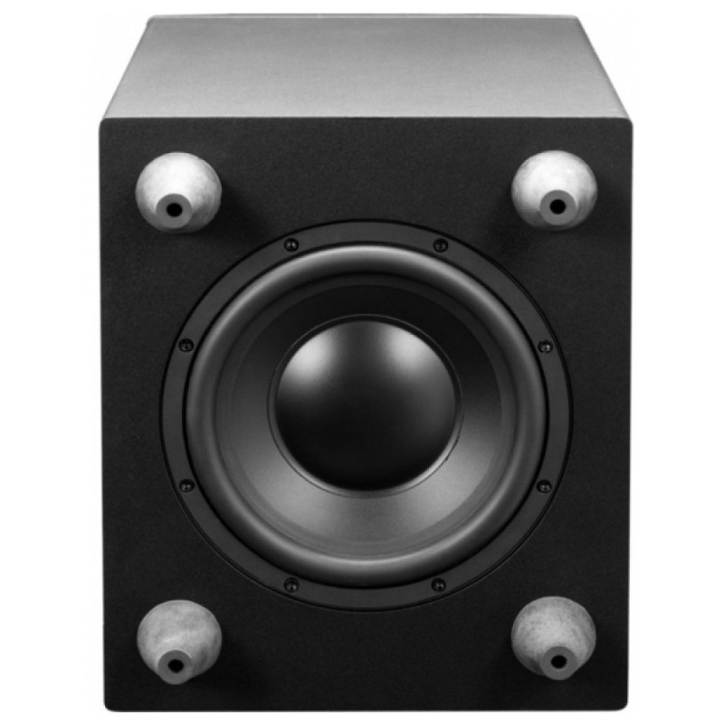 •Diseño: Carcasa de HDF pesado y acústicamente transparente, con pies de goma integrados y un acabado de atractivo vinilo negro.