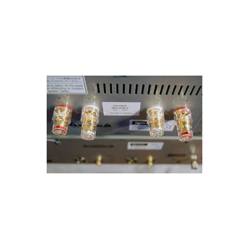 As an audiophile device, Esoteric's AI-10 combines high power 2 channel output with an analog to digital converter plus a master clock sync generator. This model is truly unique to the high end audio business. The AI-10 provides high speed, high efficiency power output (Minimum 110W+110W at 8 ohms), through the use of a large toroidal power transformer. The analog to digital converter allows high sampling rate conversion at 192 kHz/176.4kHz for analog input signals. The unit also includes 3 line level audio inputs, including magnetic phono, and an output for master clock sync to any of Esoteric's audio video disc players. Master clock sync allows the re-timing of a DAC to a transport device, enhancing digital signal accuracy, staging, transparency and imaging. The Esoteric master clock is accurate to +/- 1 ppm (As measured in parts per million). Digital input terminals include coaxial and optical (TosLink®) connections. 2 channel balanced audio inputs are also included.