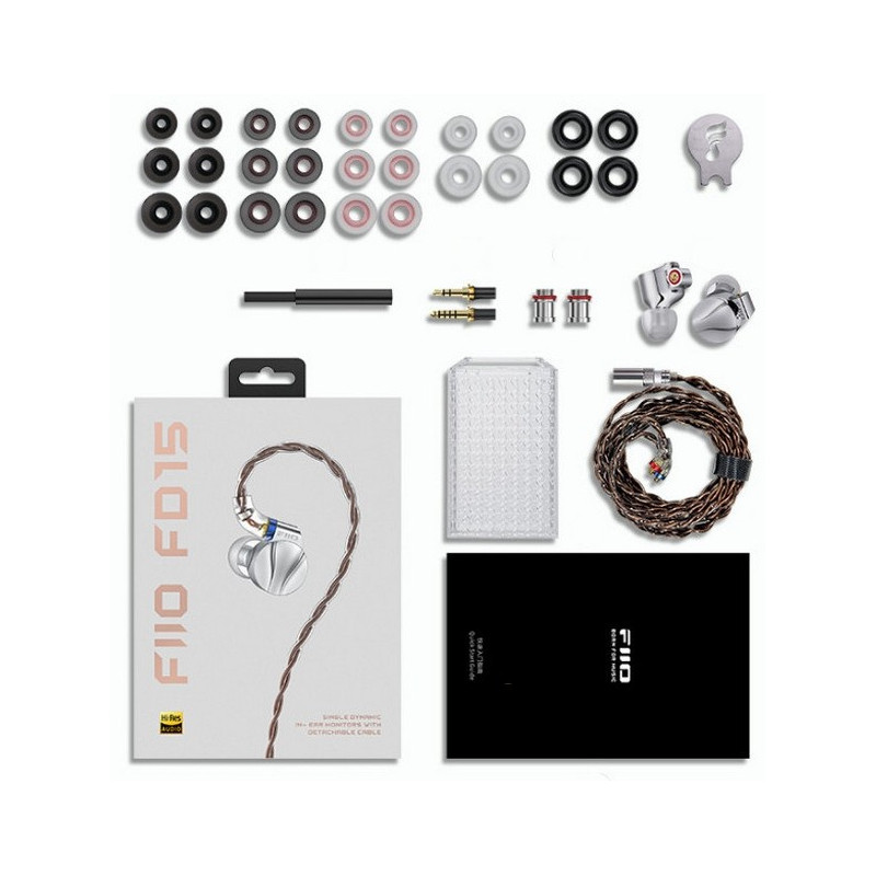 FiiO FD15 auriculares IN EAR con driver dinámico de 13.8mm | Carcasa de acero inoxidable 316L | Dos filtros de audio intercambiables | Cable con conectores MMCX tipo trenzado de cobre monocristalino Furukawa con cobre plateado monocristalino. También integra conectores 3.5mm y 4.4mm