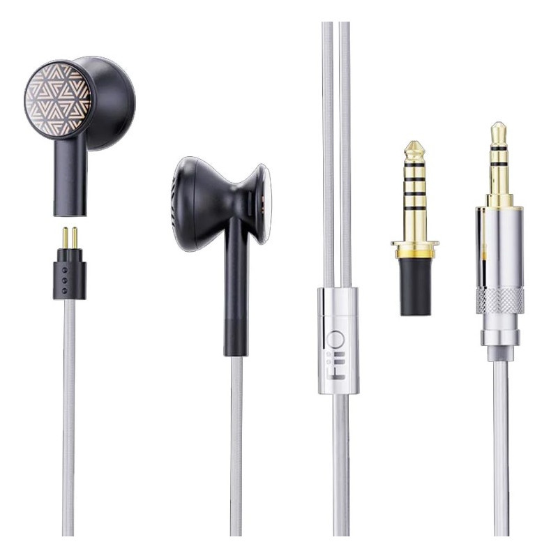 FiiO FF3S auriculares de botón con cable desmontable | Driver dinámico 14.2mm berilio-plateado | Impedancia: 45 Ohms (@1kHz) | 3 tipos de cubiertas de esponja: realce de graves, equilibrado y transparente centrado en agudos | Longitud del cable 1.2m terminado en minijack 3.5mm. Incluye también un adaptador a 4.4mm