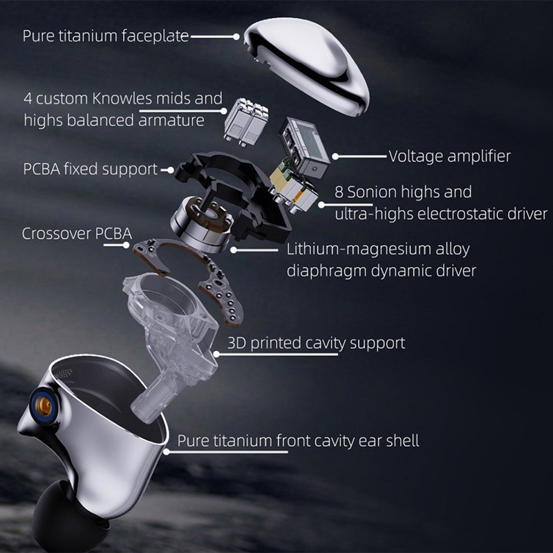 FiiO ha diseñado meticulosamente un sistema de cruce de cinco vías, que combina elementos físicos y electrónicos, para lograr una distribución de frecuencias perfecta en los 13 transductores. Mediante una cámara interna impresa en 3D especialmente desarrollada, cada transductor se aloja en un espacio acústicamente optimizado.