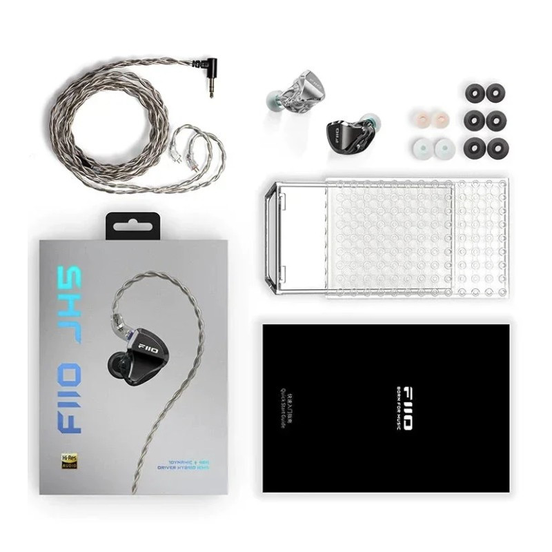El diseño acústico del JH5 toma prestados elementos del diseño de los IEM de gama alta, como el FH9 y el FH7, con el objetivo de presentar música de géneros tan diversos como la clásica o el pop, todo ello en alta fidelidad. En el corazón del JH5 hay un transductor dinámico de carbono de 10 mm que está perfectamente conectado a los transductores de armadura equilibrada personalizados que cubren las frecuencias medias a ultraaltas gracias a que los transductores están separados en tres cámaras independientes. El FIIO JH5 es realmente un IEM asequible con un sonido muy preciso que te permite experimentar lo buenos que pueden llegar a ser los híbridos dinámicos-BA.