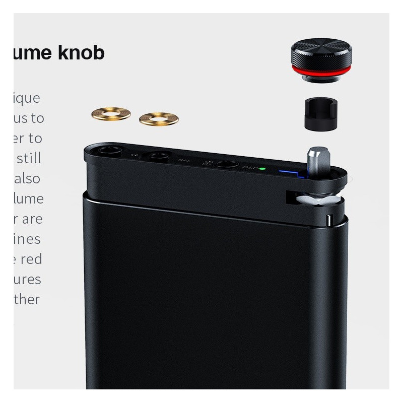 La rueda de ajuste de volumen presente en el FiiO Q1II se ha diseñado en una forma redondeada que maximiza su diámetro para que sea más fácil de rotar a la vez que ocupa poco espacio en el chasis.