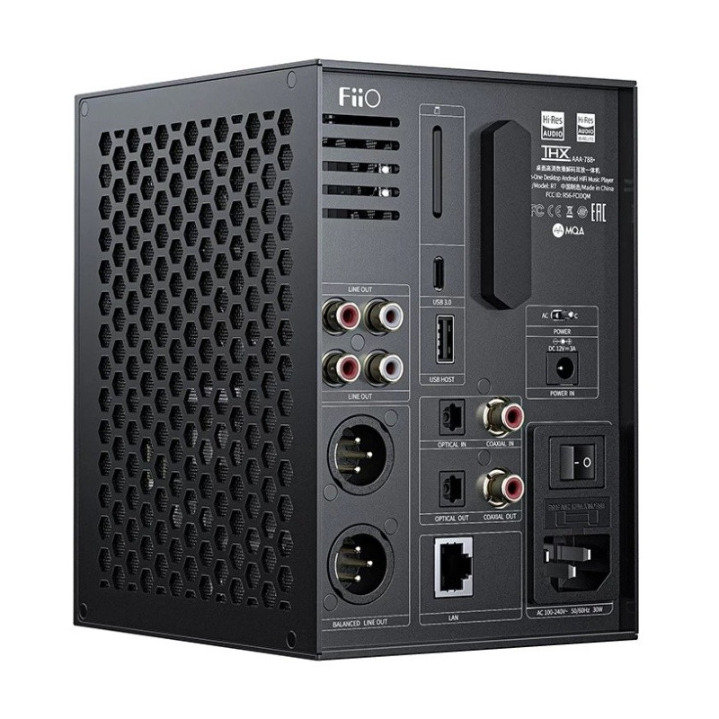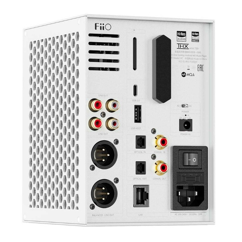 El amplificador de auriculares THX AAA-788+ ha sido desarrollado conjuntamente por FiiO y THX e incluye dos unidades de este circuito amplificador de auriculares, que proporciona una potente salida de 3000mW (a 32Ω/salida balanceada), así como un bajo nivel de ruido con un factor SN de 122dB. Dispone de hasta cinco ajustes de ganancia, una salida de auriculares XLR balanceada de 4,4 mm/4 patillas, la primera salida de línea XLR de FiiO y un puerto LAN.