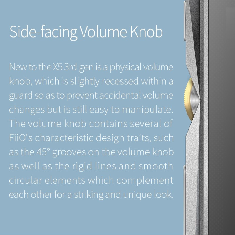 El X5 3rd gen viene equipado con dos excelentes AKM AK4490EN, uno para cada canal. El AK4490EN es parte de una nueva generación de DACs de 32-bit de gran calidad que soportan los formatos PCM y DSD. Gracias a la implementación de doble canal de esta arquitectura de baja distorsión -VELVET SOUND- de AKM que incluye el filtrado digital con procesado de 32-bit, los chips DAC del X5 3rd gen tienen la capacidad de reproducir la música con total exactitud.