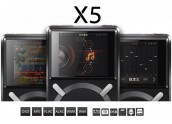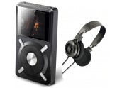 Reproductor portátil FiiO X5. Las tarjetas microSD que se pueden insertar en el aparato (se venden por separado) admiten capacidades de hasta 128GB pudiendo albergar de esta manera una biblioteca musical entera.