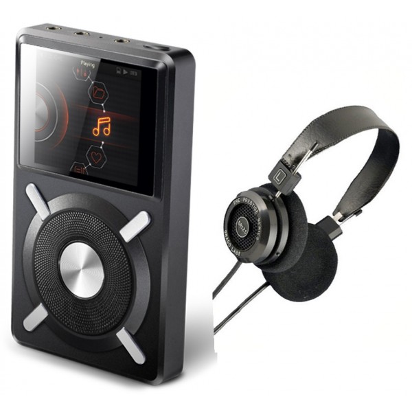 Conjunto formado por el reproductor portátil FiiO X5 y los auriculares Grado SR125i
