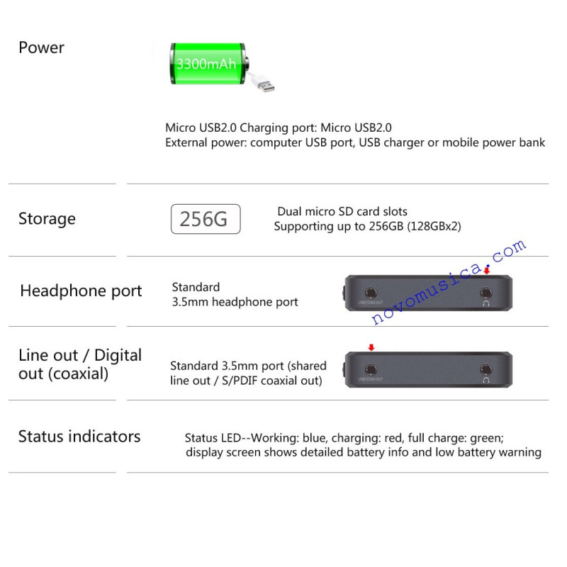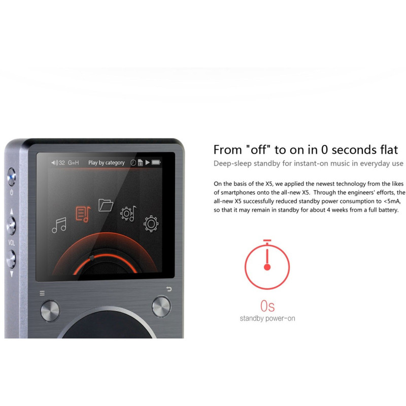 El FiiO X5 de Segunda Generación incluye una nueva función de administración de energía, gracias al nuevo modo de hibernación (con un consumo inferior a 5mA), que permite que el reproductor se desconecte y vuelva a encenderse de forma inmediata. El indicador de batería ahora muestra en todo momento un porcentaje del nivel de batería del dispositivo, por lo que es más fácil saber cuántas horas de actividad le restan y cuándo es necesaria una nueva carga.