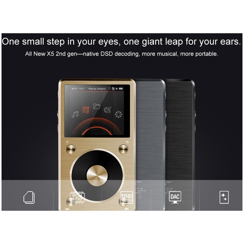 El nuevo X5 II comparte las nuevas funciones con las que contaba el FiiO X3 II, como son la reproducción nativa archivos DSD 64 y 128, pudiendo decodificar directamente ISOs de SACD, además de los archivos WAV, FLAC, APE, WMA, ALAC, AIFF.