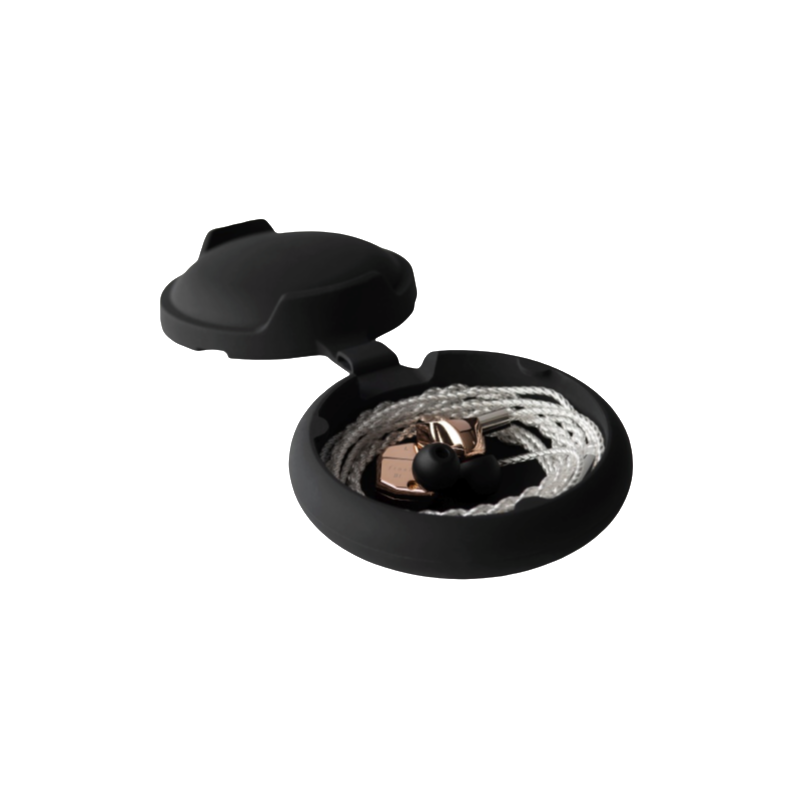 Con este maletín de transporte de silicona, los cables pueden enrollarse y almacenarse fácilmente. Los propios auriculares están asegurados suavemente con finas fundas de silicona en forma de cúpula.