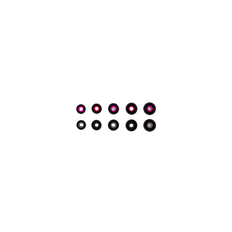 Se emplean dos tipos de silicona que difieren en rigidez para el conducto de sonido y para el auricular que entra en contacto con el oído del usuario. El silicio utilizado para el conducto de sonido es más rígido que el utilizado para el auricular, y al aplicarle el procesamiento de ranuras, combina fuerza y flexibilidad. Se ha empleado silicona blanda para el auricular, lo que proporciona un ajuste cómodo y un alto nivel de aislamiento acústico.