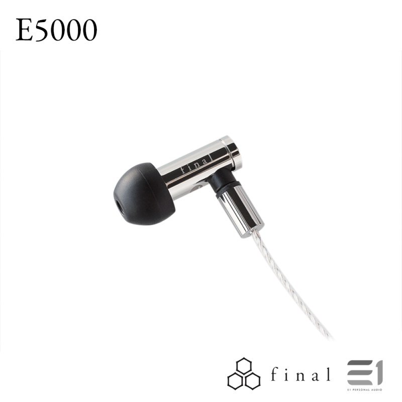 E5000 - realizado en acero INOX con acabado espejo. Driver6.4mmΦ dynamic driver. Conector MMCX, Cable recubierto de plata CableOFC, Sensibilidad93dB, Impedancia14Ω, Peso24g, Longitud del cable1.2m