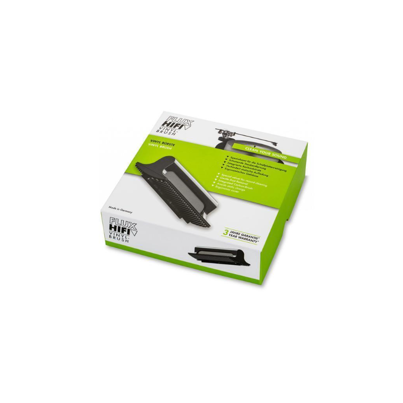 El VINYL-BRUSH de FLUX-Hifi está diseñado para liberar el disco del tocadiscos del polvo superficial y de la carga estática. Un diseño completamente nuevo combina almohadillas de terciopelo con un cepillo de carbón integrado. La oficina especial asegura una limpieza plana de la superficie del plato, las partículas de polvo se eliminan completamente.