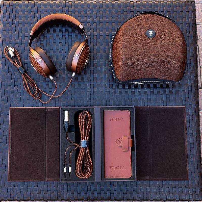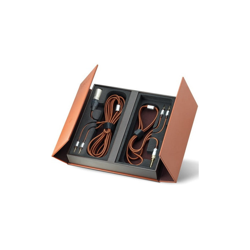 Para auriculares de gama alta, un pack de gama alta. Stellia se presenta en un estuche de piel sintética, en el mismo color que el coñac y el moca. Una caja de almacenamiento contiene dos cables de alta calidad con los mismos materiales y acabados. El primer cable mide 101/8 pies (3 metros) y es ideal para su uso en casa en un amplificador de gama alta. El segundo está diseñado para ser portátil: mide 33/8 pies (1,2 m) con una toma estéreo de 1/8" (3,5 mm) y es la solución perfecta para conectar Stellia a un reproductor portátil para audiófilos.