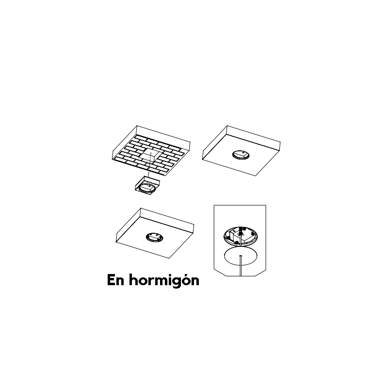 Diferentes soportes para el altavoz Celeste, a elegir entre soporte de superficie, soporte para instalación en yeso o pladur, y soporte para instalación en techos de hormigón.