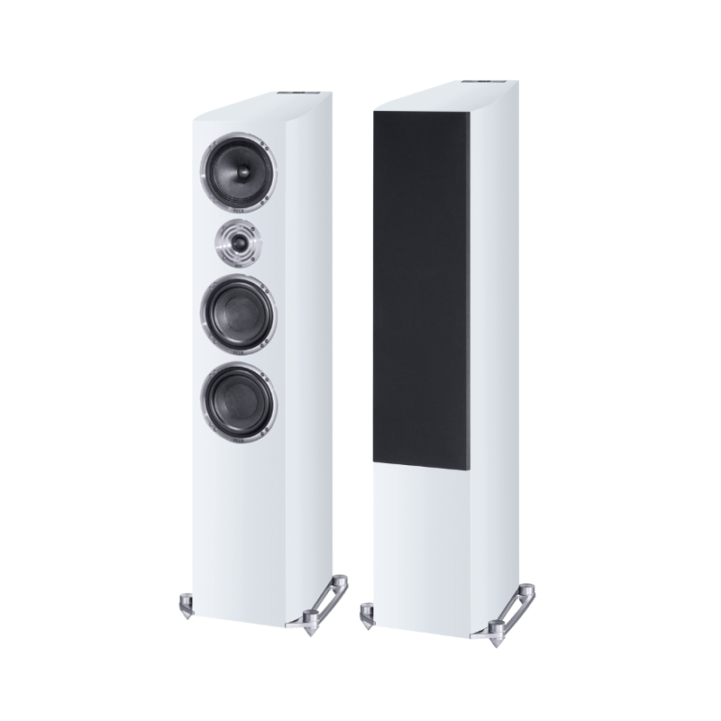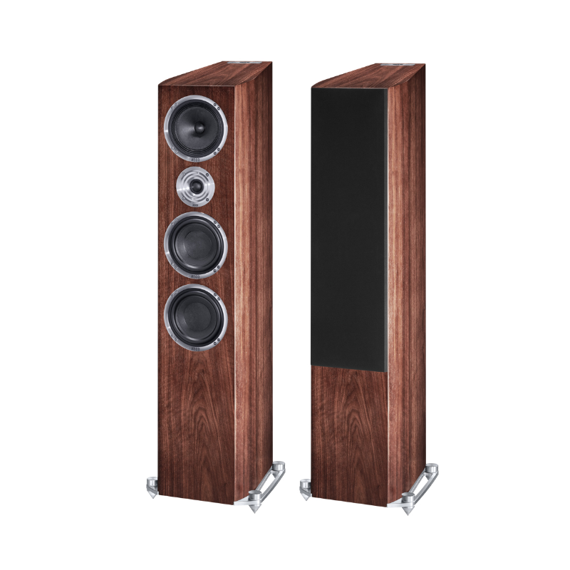 Un altavoz de suelo de gama alta exquisitamente coordinado con puntales de aluminio macizo y puntas de metal ajustables en altura. La distribución óptima del peso y el desacoplamiento acústico de la superficie de montaje garantizan una experiencia auditiva del más alto nivel. Todas las frecuencias por encima de aprox. 2.800 Hz son atendidas por el nuevo tweeter Fluktus con su cúpula PFC de 30 mm. El panel frontal de ondas múltiples optimizado por ordenador del tweeter garantiza unas propiedades de dispersión perfectas, incluso cuando se trata de secuencias de música y películas exigentes. Las frecuencias bajas y medias son atendidas por tres chasis de 170 mm, que alojan dos woofers y un driver de rango medio. Todos los chasis están equipados con el acreditado cono de papel kraft de HECO, que es conocido por sus características de sonido audiófilo y su alta estabilidad.
