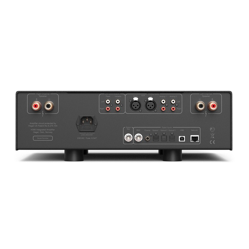 Hegel H390 Amplificador High End Integrado | 2x250W a 8 Ω | Entradas analógicas XLR balanceado y 2x RCA no balanceado | Entradas digitales coaxial BNC y RCA, 3 x óptico, 1 x USB, 1 x red | Salidas: 1 x fijo no balanceado (RCA), 1 x variable no balanceada (RCA) | Salida digital coaxial BNC | Compatible con Spotify Connect - Roon - DLNA - MQA...
