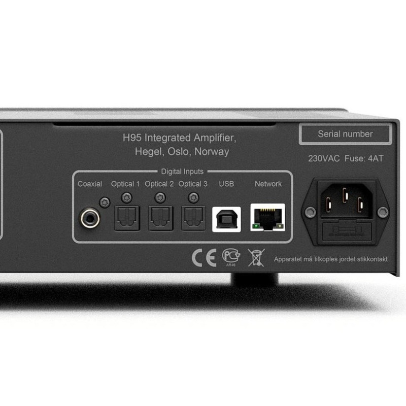 El H95 no sólo está diseñado para cambiar con el tiempo, sino también con sus necesidades. Todas las entradas son configurables para ser entradas de nivel fijo, lo que le permite integrar fácilmente el H95 en un Home Theater o en un sistema Multi Room existente. También dispone de una salida de auriculares de alta calidad, una salida de previo variable para conectar un subwoofer u otro equipo, y una elegante pantalla OLED informativa. Esto lo convierte en un perfecto "motor" central de su sistema. No hay necesidad de preocuparse por futuros complementos. Cambiar al diseño fresco y a la calidad de sonido de Hegel, con una gran cantidad de entradas y posibilidades de reproducción, te permitirá construir un asombroso sistema multi-talento. Eso es inteligencia.