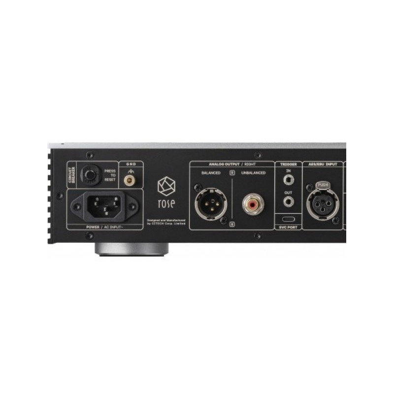 La etapa digital del RD160 incorpora el módulo Rose DPC™, diseñado para garantizar que todos los bloques de procesamiento mantengan el más alto nivel de precisión de la señal para ofrecer una reproducción de sonido fiel y detallada. Este módulo sincroniza con precisión las señales digitales de entrada de varias formas con un reloj OCXO de alta precisión y las alinea con las señales I2S. Este proceso aplica sincronización y bloqueo de reloj para minimizar la fluctuación, en particular al procesar señales de audio de alta resolución, para un procesamiento de señal preciso y, por lo tanto, un sonido natural y transparente. La interfaz de usuario y los circuitos de configuración de la GUI, así como los circuitos de señal de audio digital, están completamente separados para bloquear eficazmente la distorsión y la interferencia. Este diseño permite que el RD160 brinde un sonido de alta fidelidad con una señal digital de alta calidad y compatibilidad con una amplia gama de formatos digitales.