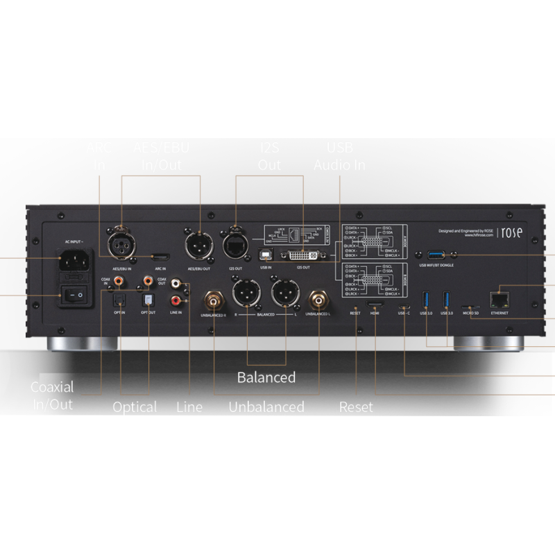 El sistema HiFi Rose OS proporciona una experiencia musical innovadora. Transmita y reproduzca música de altísima calidad, vídeo de alta definición 4K, YouTube sin anuncios, Podcasts, varias emisoras de radio de todo el mundo, reproducción de CDs/Ripping y mucho más.