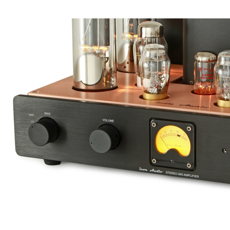Icon Audio Stereo 845 -Amplificador estéreo puro triodo. Push Pull 40 + 40 Watios. Rectificación a válvulas. Pura clase A. Condensadores Jensen & Solen