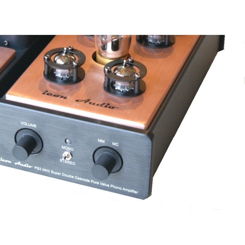 Icon Audio PS3 MKII MM/MC -previo de fono a válvulas para cápsulas MM y MC pudiendo conectar dos platos. Válvulas 4x ECC88, 1x ES6N7 como previo y ECC83 y 5687 alimentación