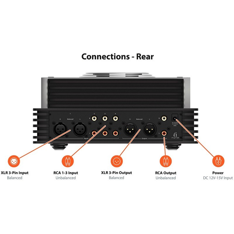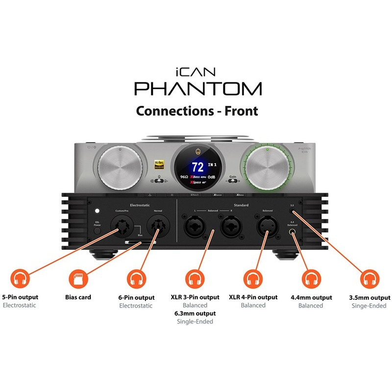 iFi iCAN Phantom amplificador de auriculares con todo tipo de salidas, incluso para electro-estáticos | Entradas RCA y XLR | Salidas frontales electroestáticas de 5 pin y 6 pines - 3XLR mono - Jack 6.3mm - 4 XLR - 4.4mm y 3.5mm